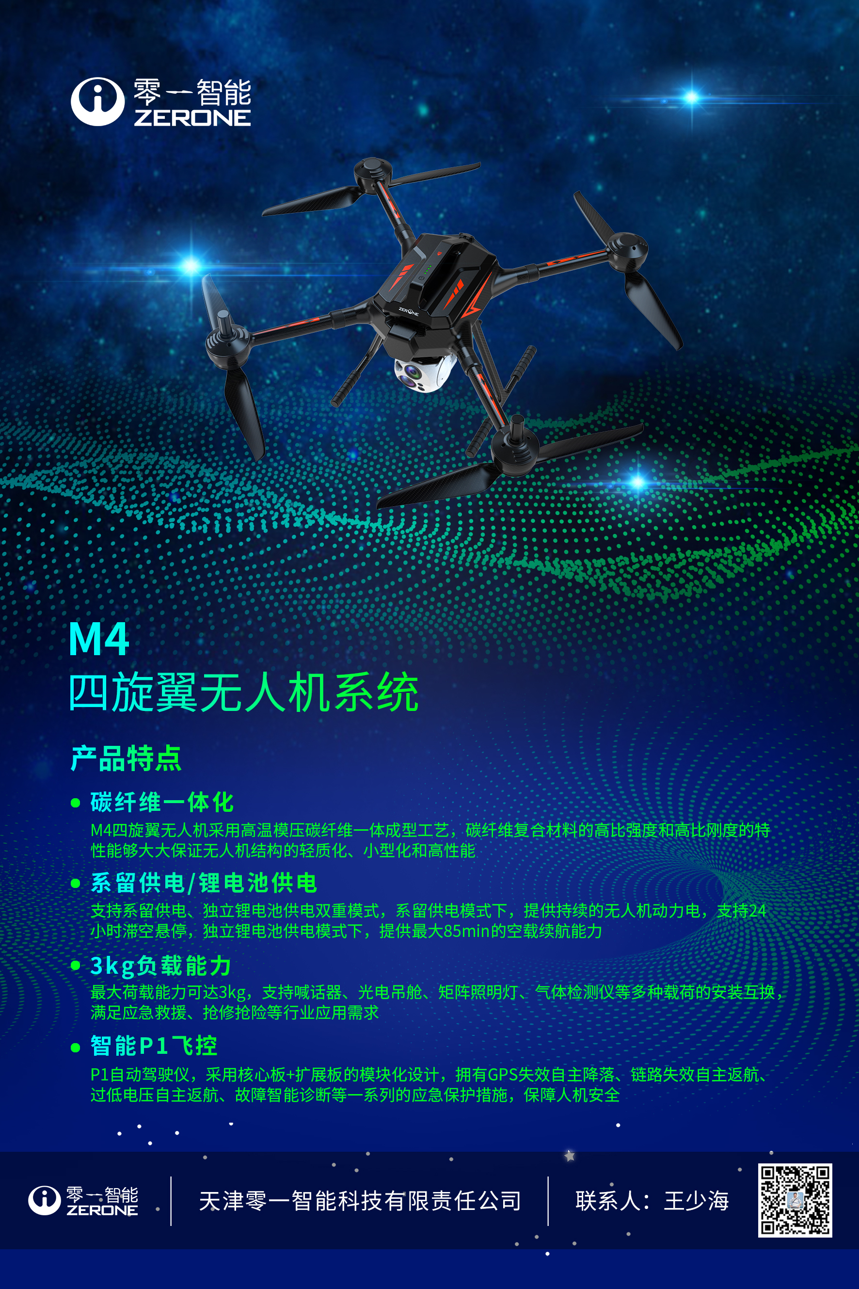 M4多旋翼无人机空载飞行续航可达85min,挂载1.5kg载荷飞行续航可达60min,完全满足巡检需求。